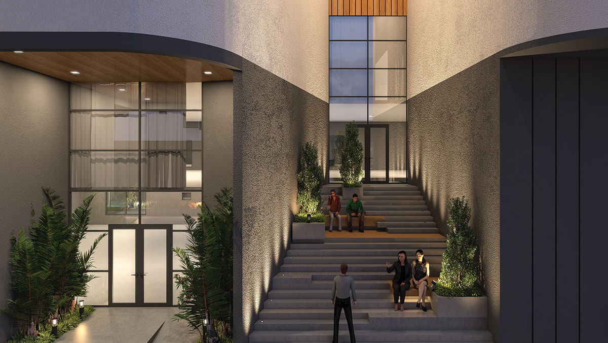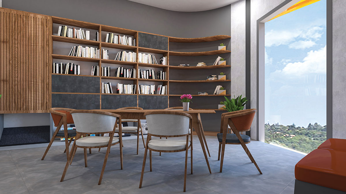 The young at heart residents merit an entrance of their own. Tucked away, amidst thoughtfully conceived and designed seating spaces with potted greenery and eclectic urban landscaping, this entrance presents an altogether different ambience.