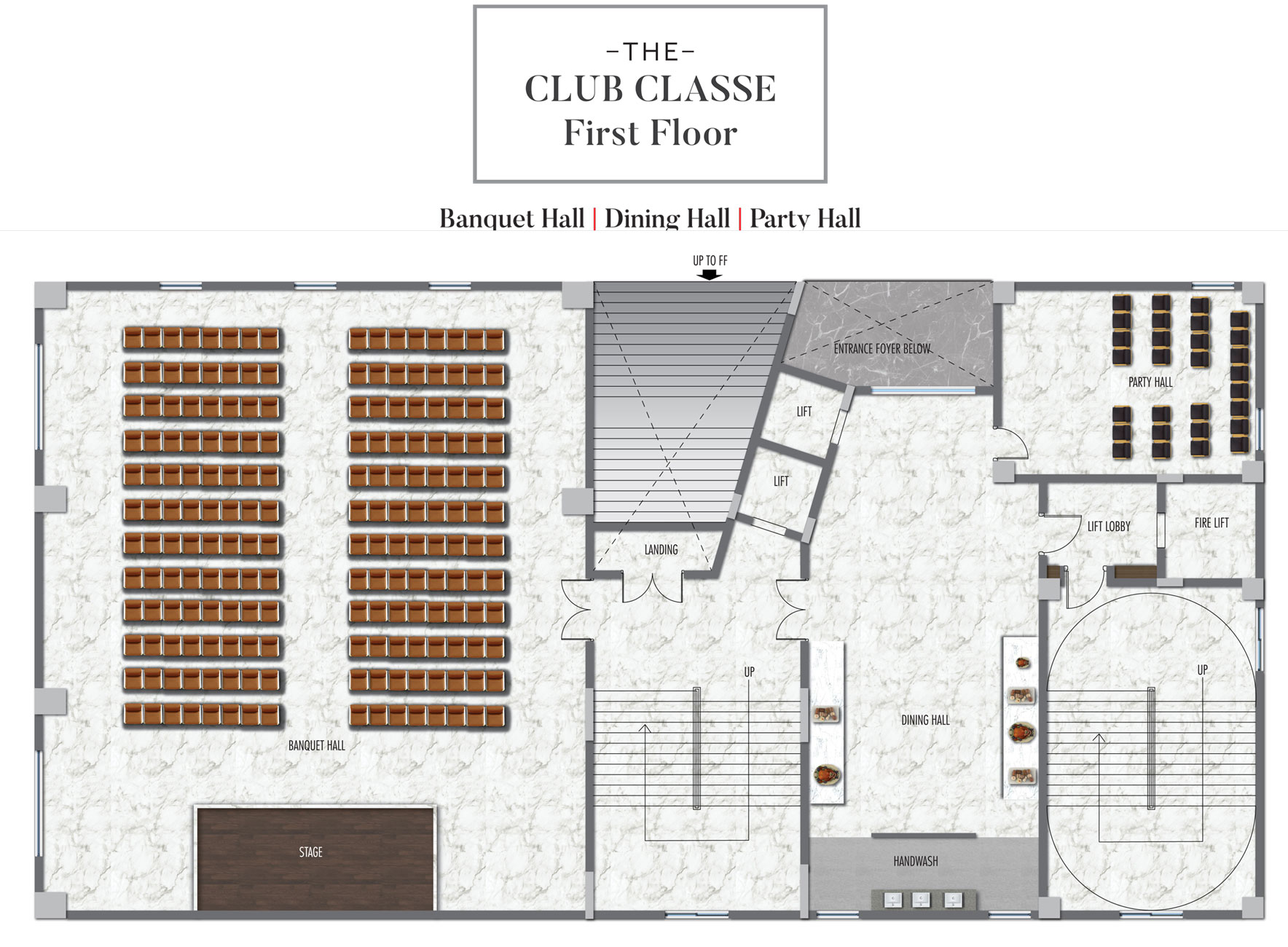 • Two multipurpose / party halls with separate dining hall.